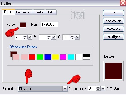 (VG oder HG-Farbe),ganz unten bei Einbinden, stellst du um auf Einfärben -- Ok.