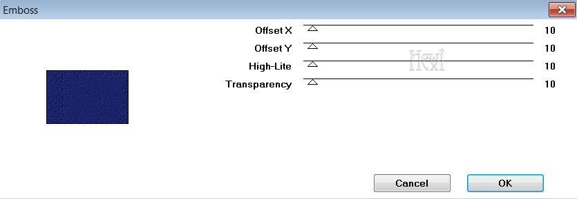 8. Effekt -- Graphics Plus -- Emboss -- Einstellung siehe Screen