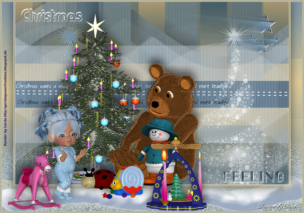 14. Öffne *Christmas-Text-1-Azalee* aus dem Material, kopieren und einfügen auf dein Bild, Rechtsklick -- Ausrichten -- Mitte,
